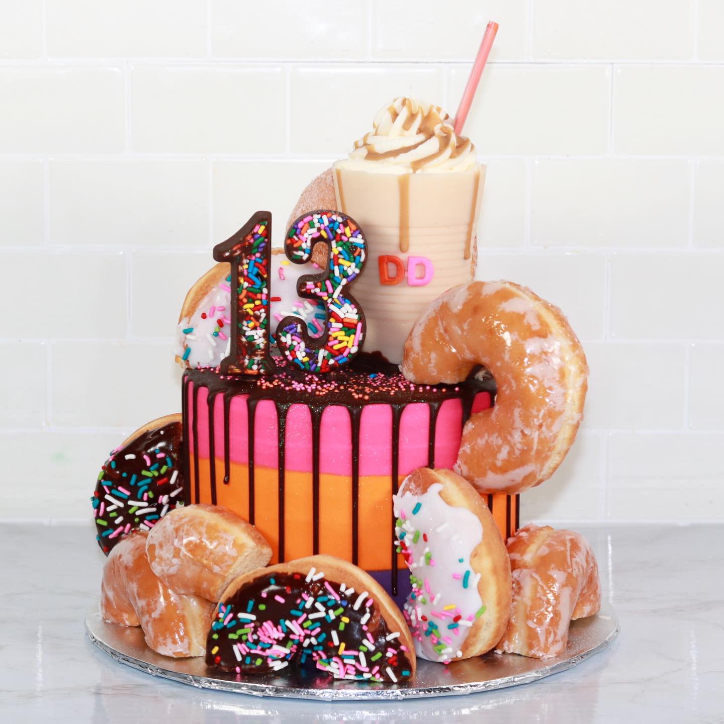Pin By Laurie Cole Sible On Dunkin Donuts Party Dunkin Donuts Cake Donut Birthday Cake Dunkin Donuts Iced Coffee